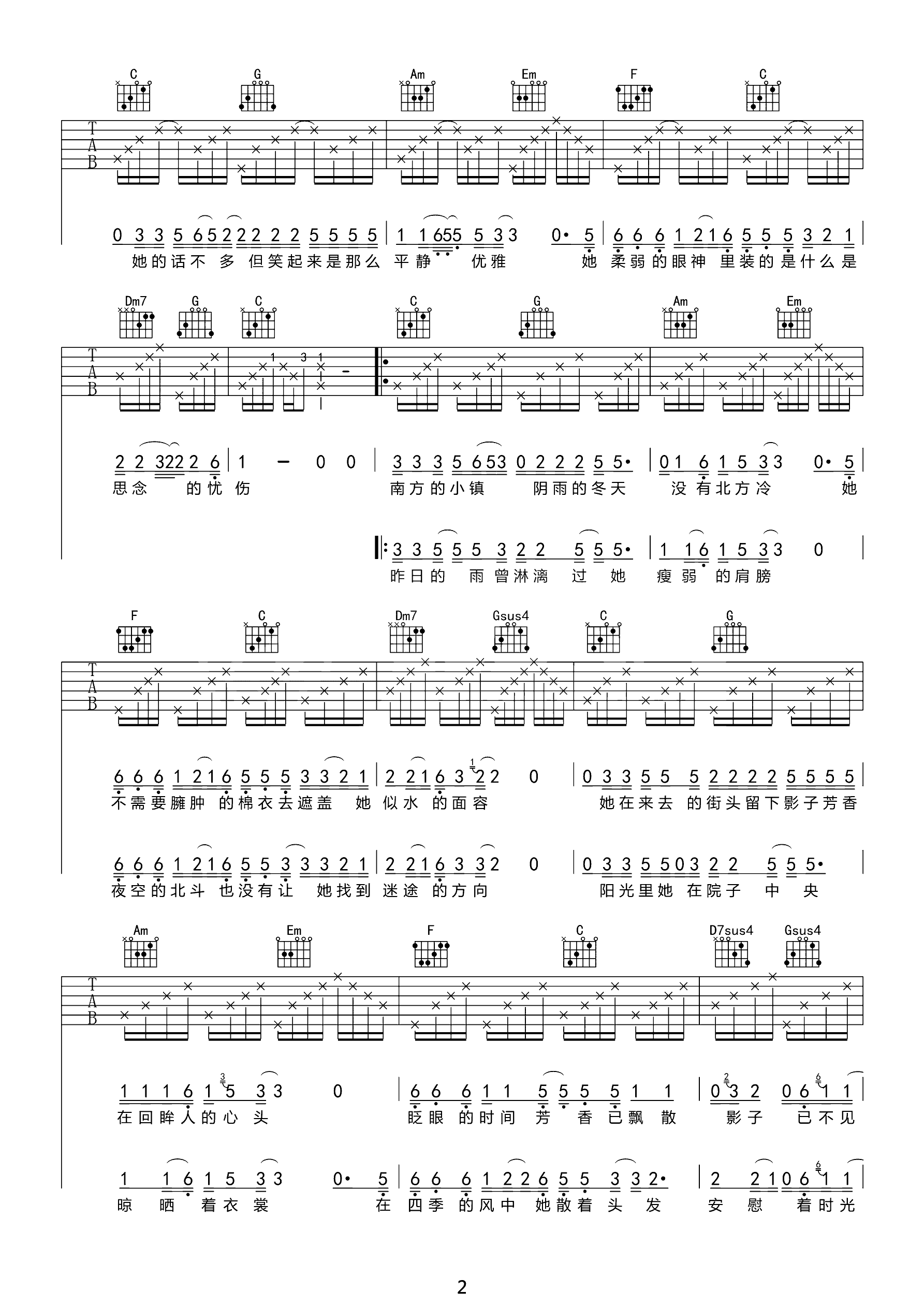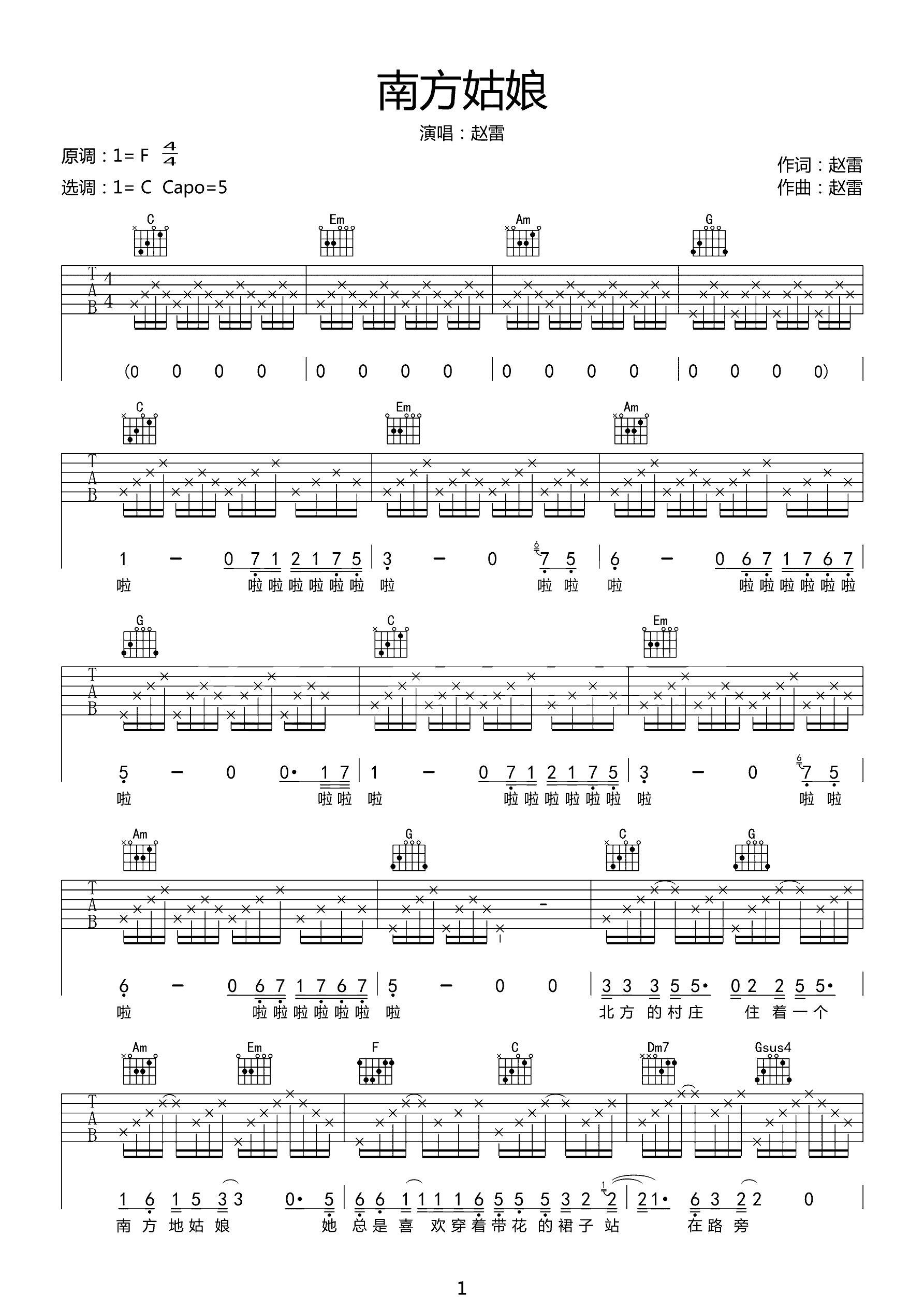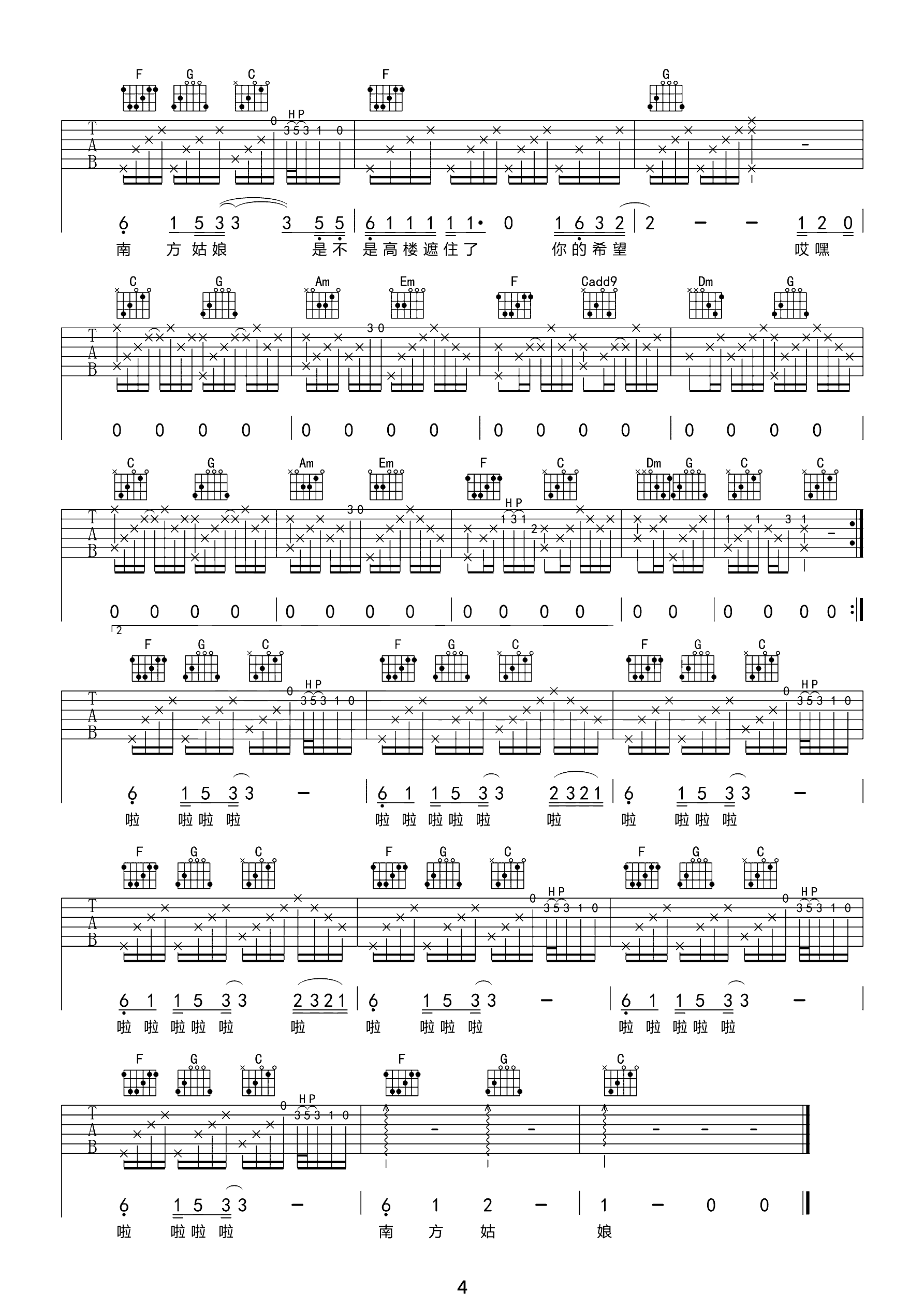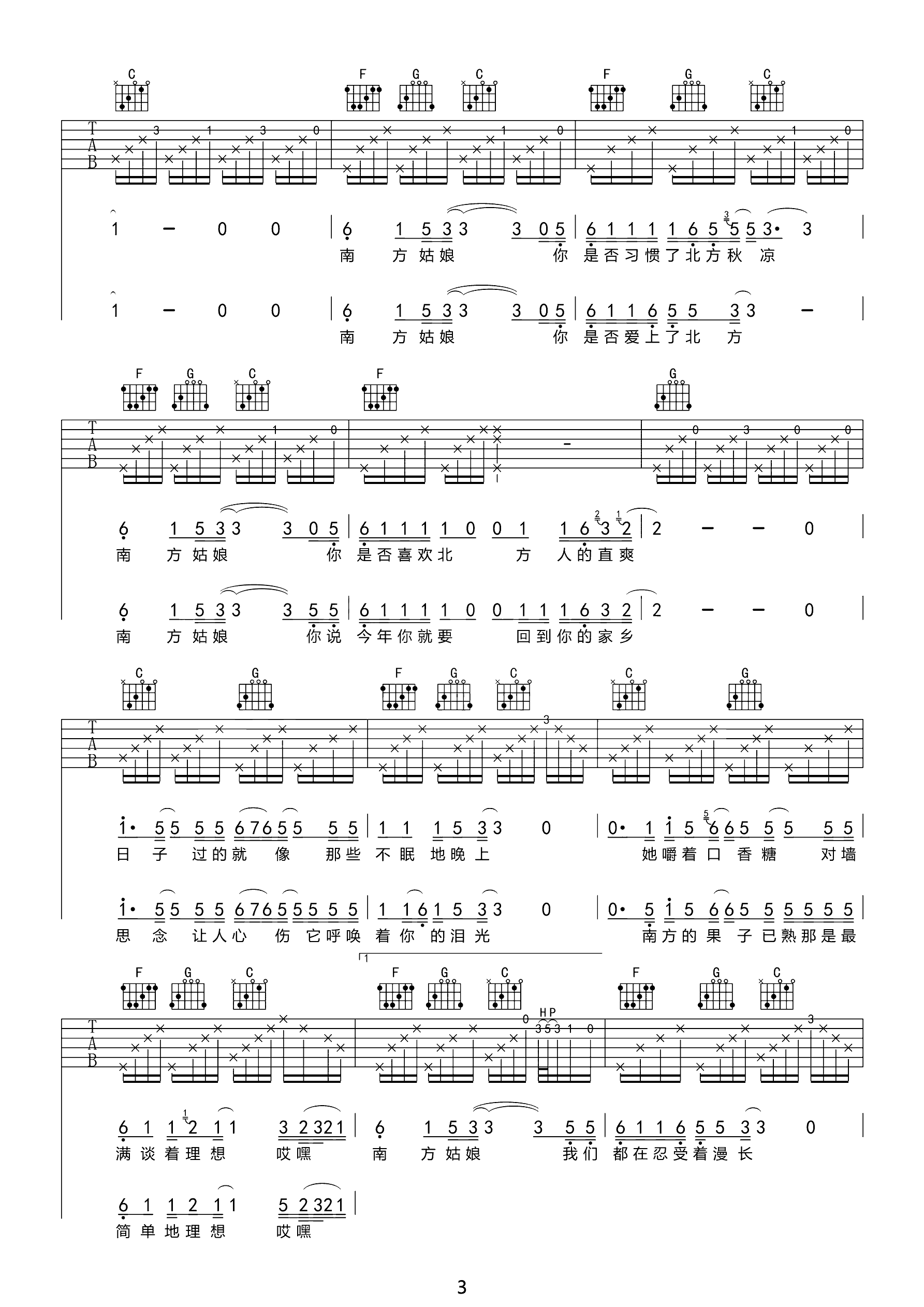 吉他谱 | 热门弹唱《南方姑娘》