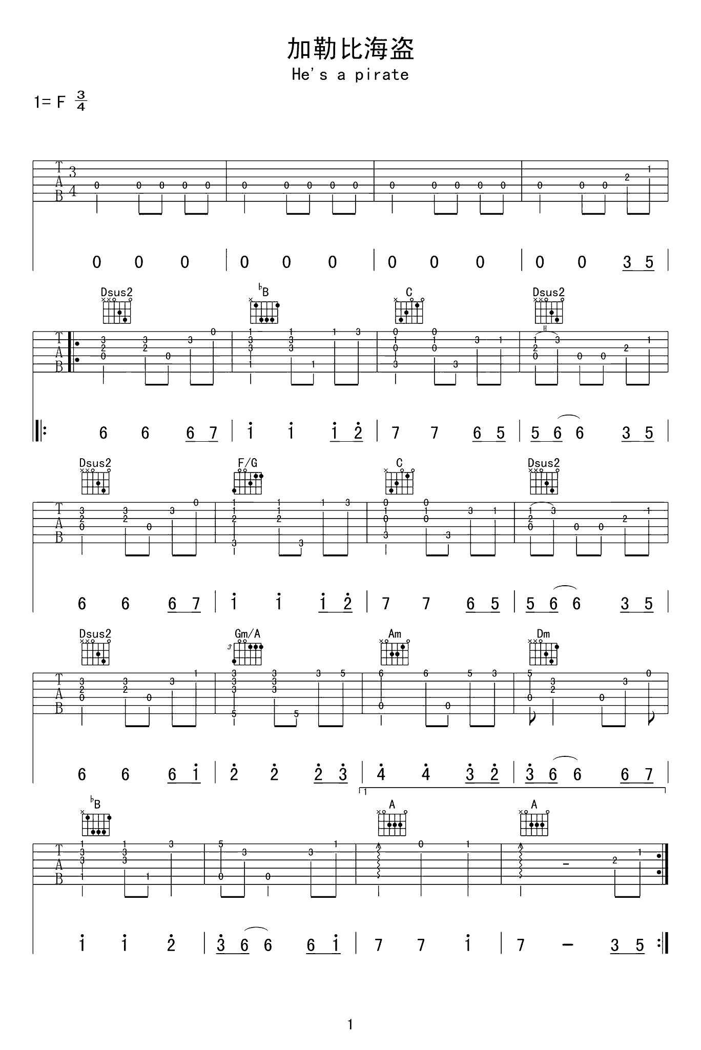 吉他谱 | 经典指弹《加勒比海盗》