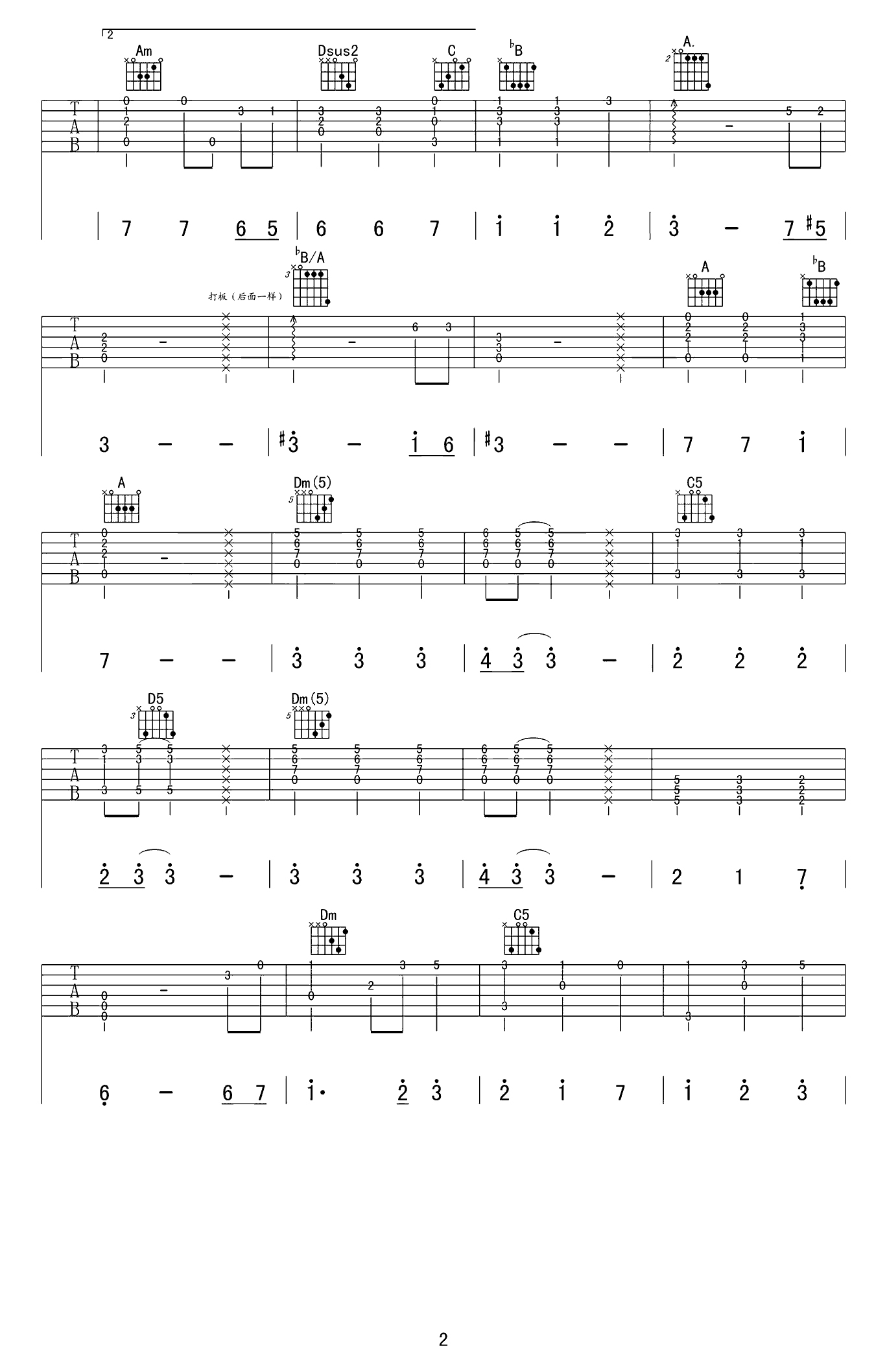 阿婆说吉他谱 暗杠 蔡宁《阿婆说》吉他