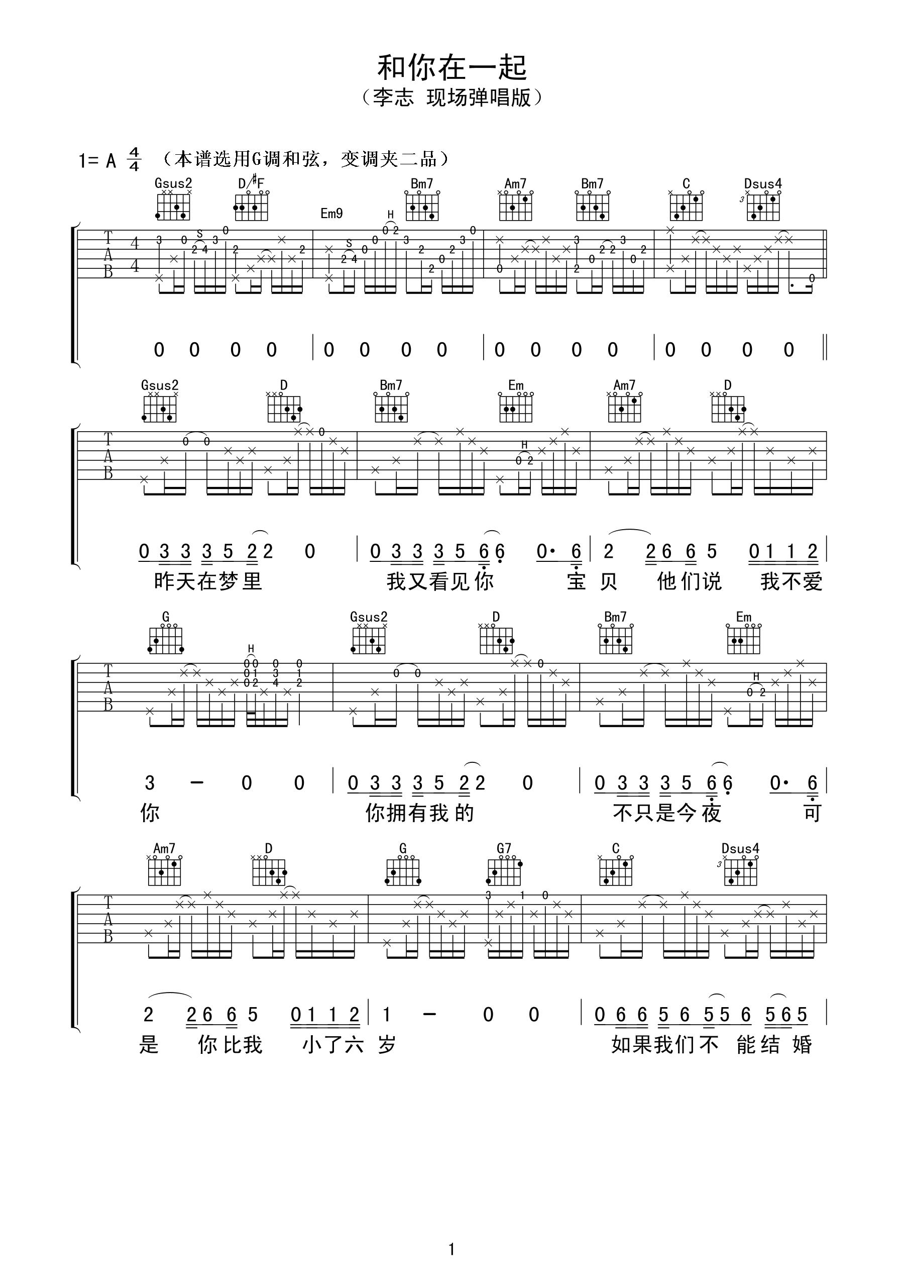 吉他谱 | 热门弹唱《和你在一起》