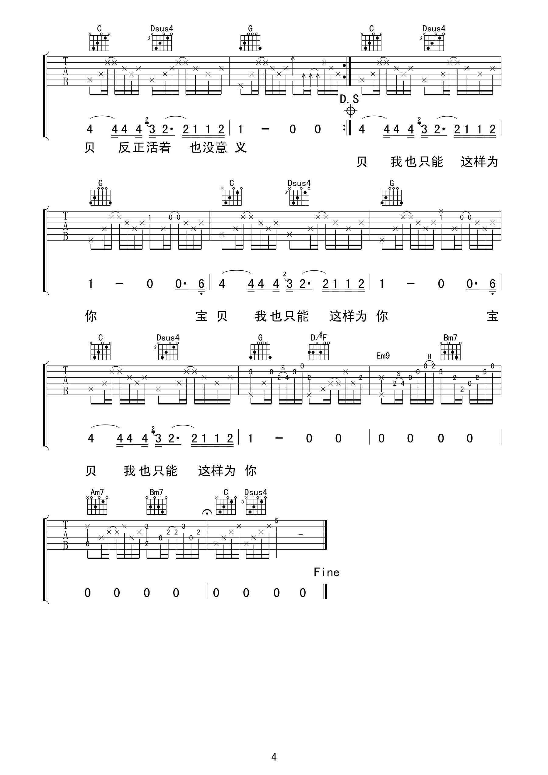 如果这都不算爱 C调吉他谱