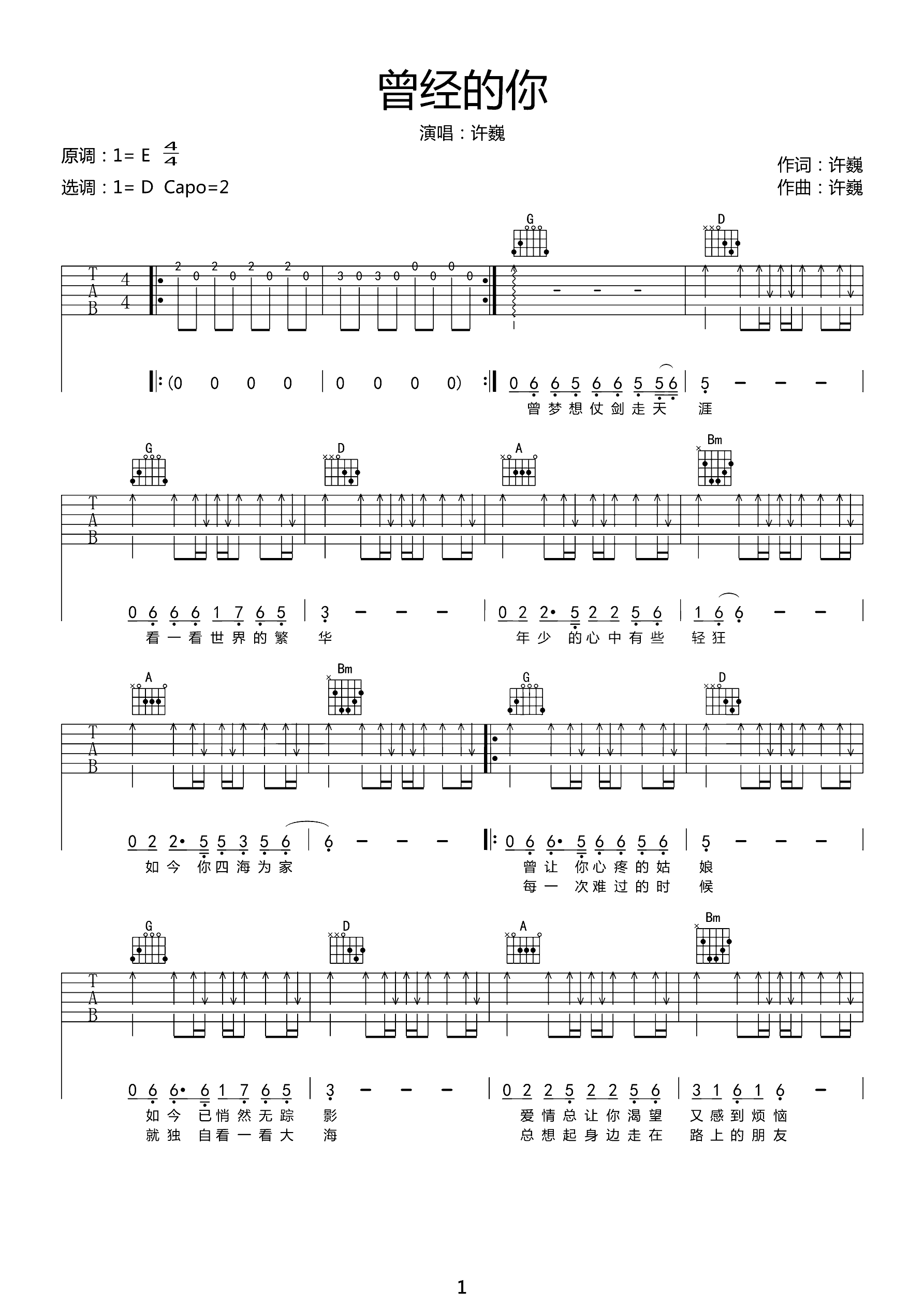 吉他谱 | 热门弹唱《曾经的你》