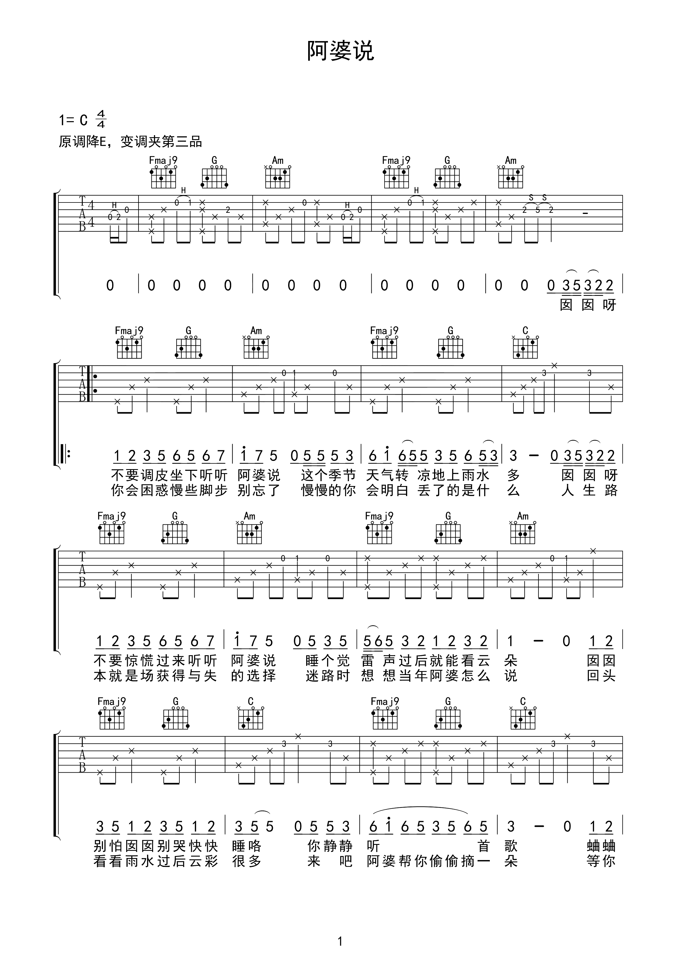 吉他谱 | 热门弹唱《阿婆说》