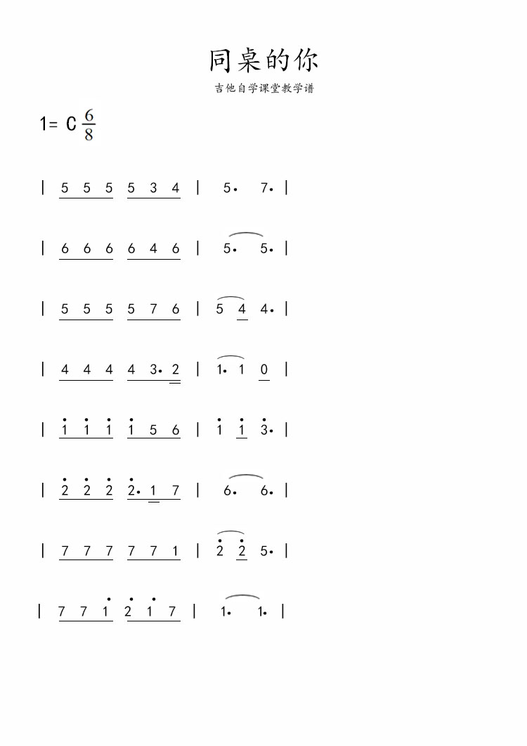 吉他谱 | 简谱《同桌的你》