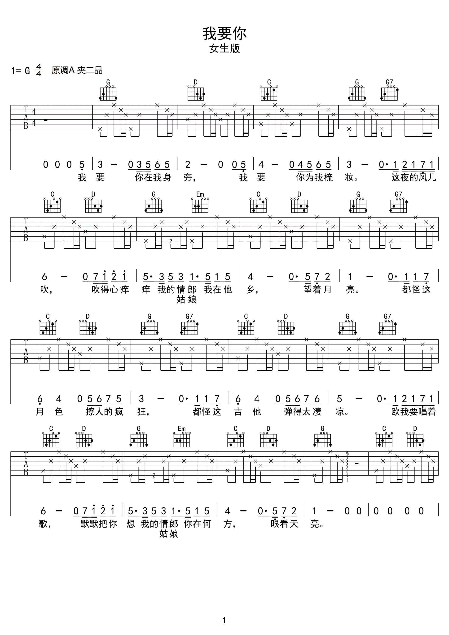 吉他谱 | 热门弹唱《我要你》