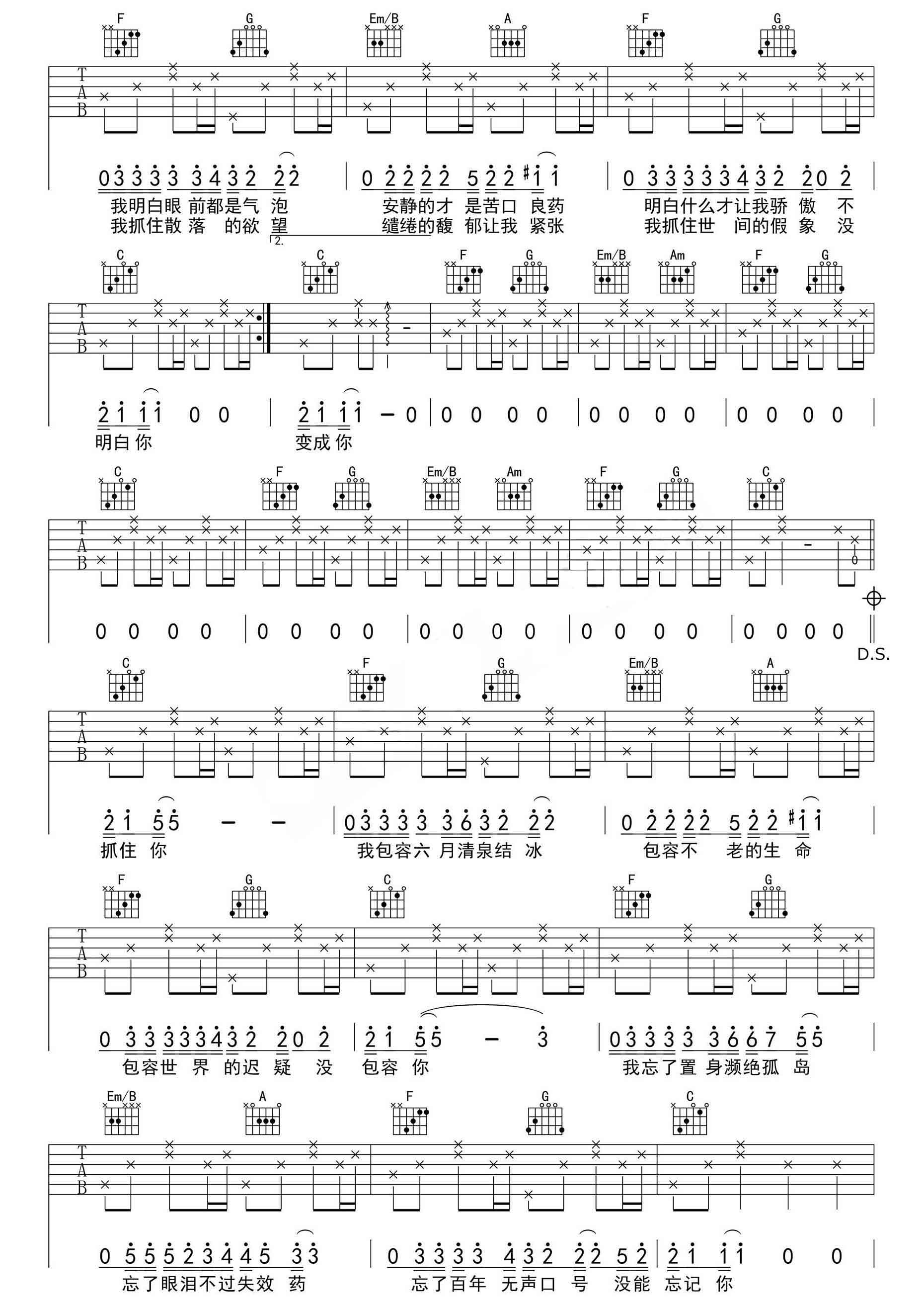 闷骚的你吉他谱