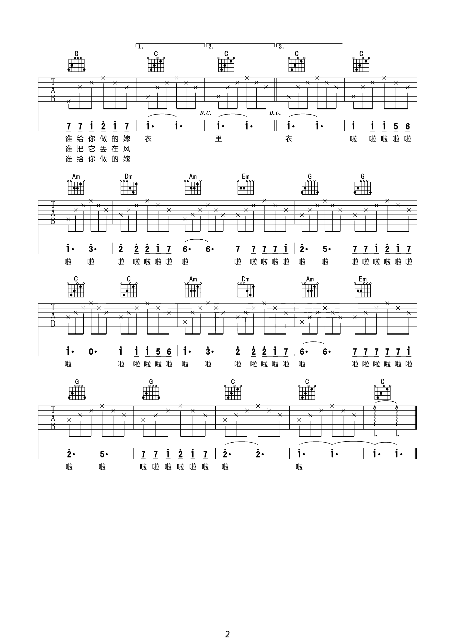谢春花《借我》吉他谱 G调弹唱谱 高清