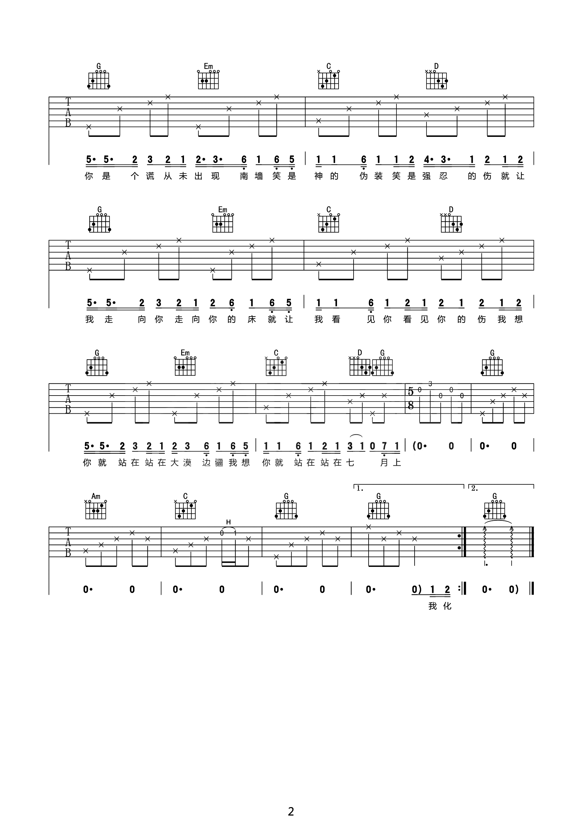 薛之谦《木偶人》吉他谱_G调弹唱谱_图