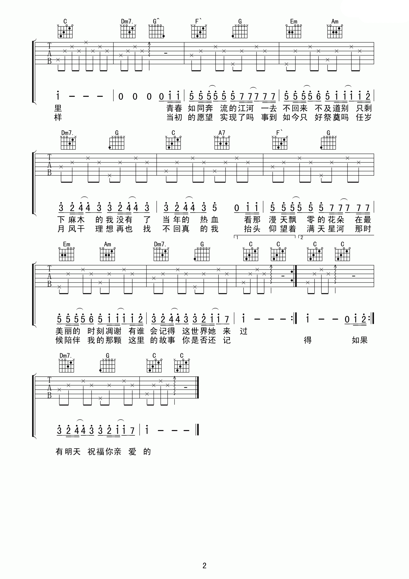 田馥甄《爱了很久的朋友》吉他谱 C调女