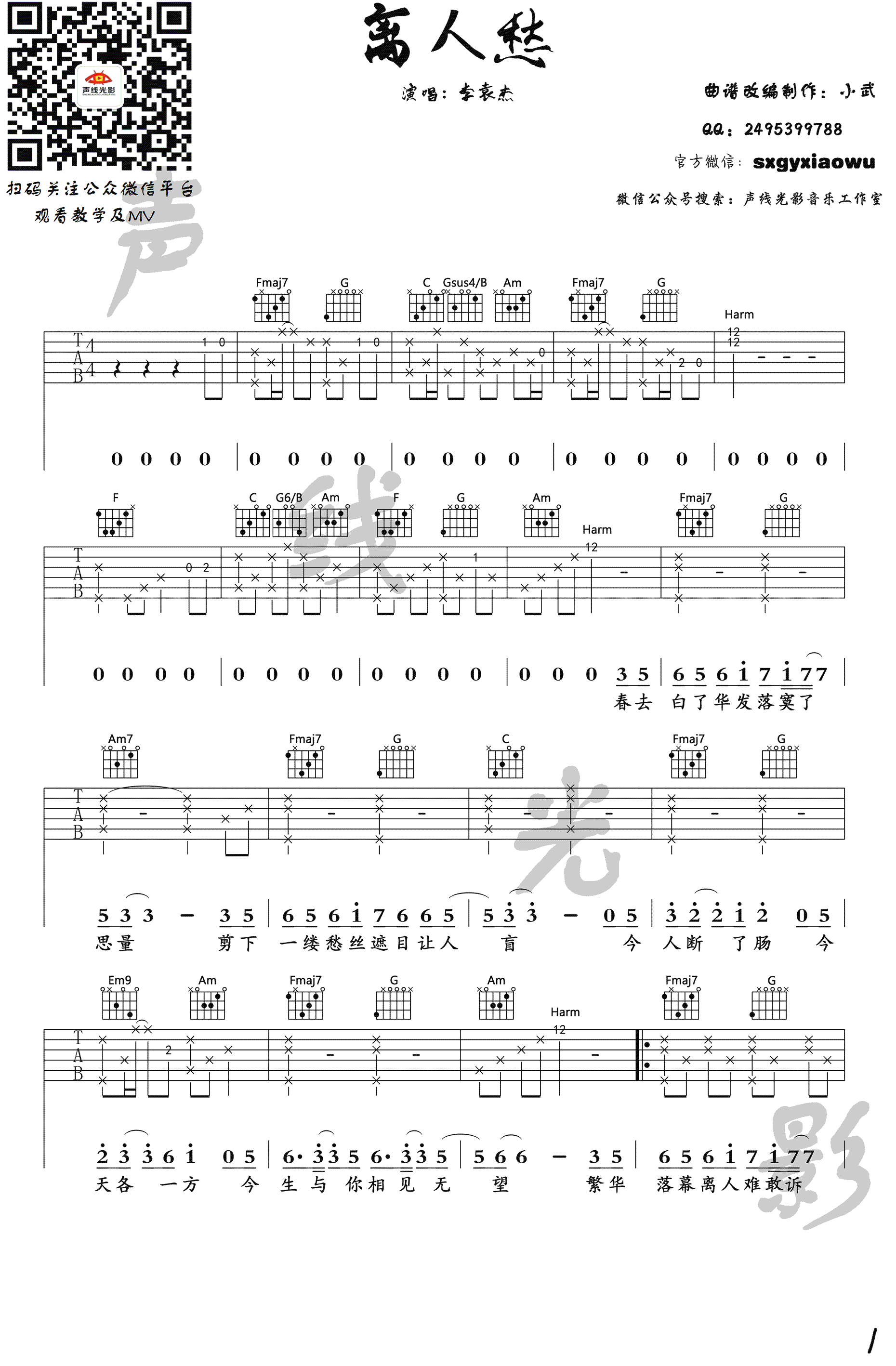 离人愁吉他谱 李袁杰 声线光影版本 吉他弹唱视频教学