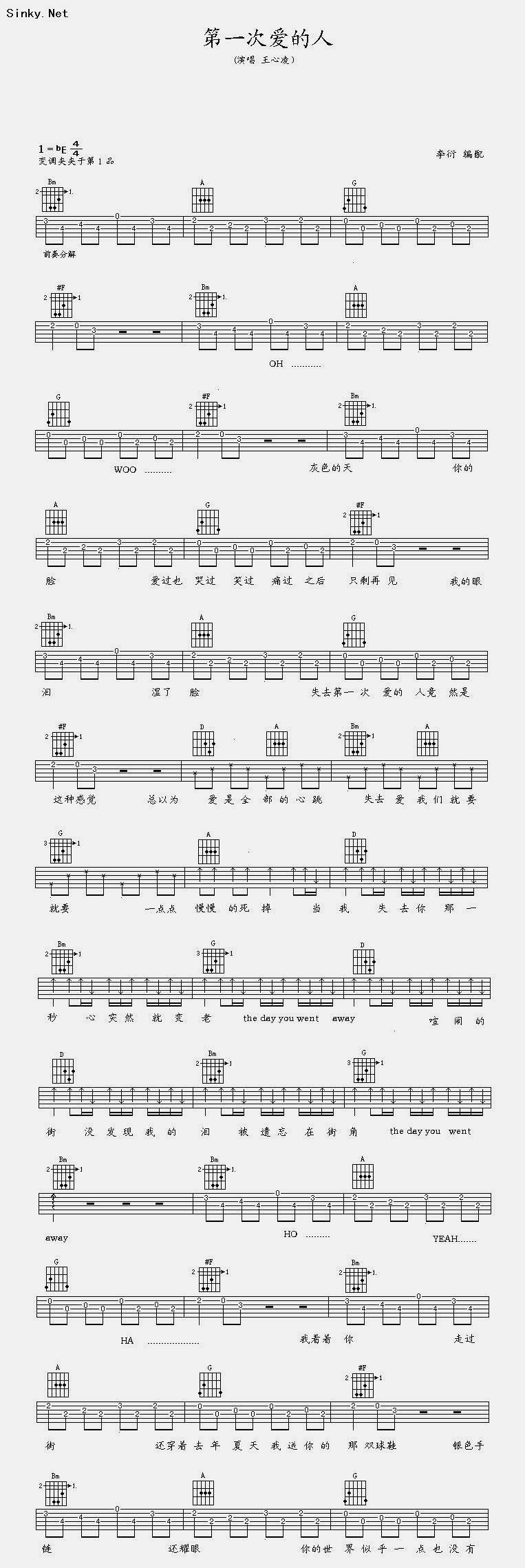 第一次爱的人—原调—带前奏吉他谱