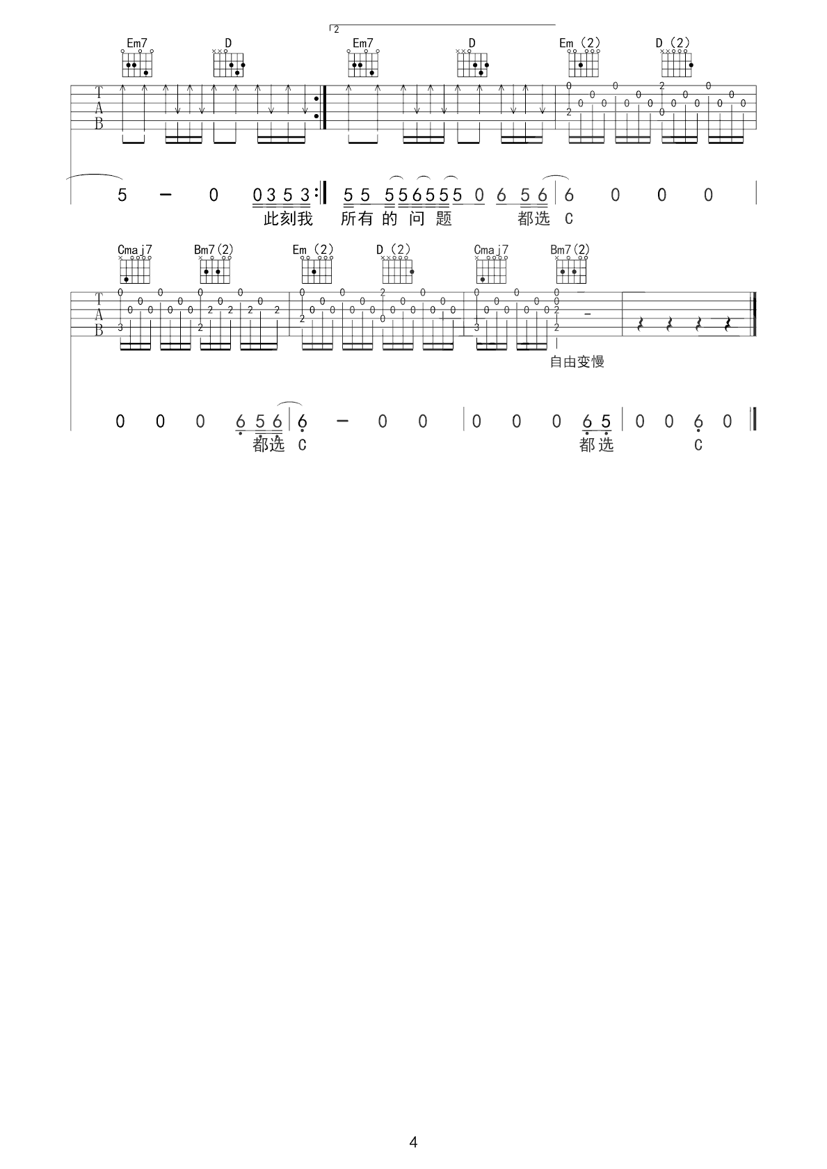 都选C吉他谱 大鹏 G调弹唱谱 抒情版本 吉他教学视频