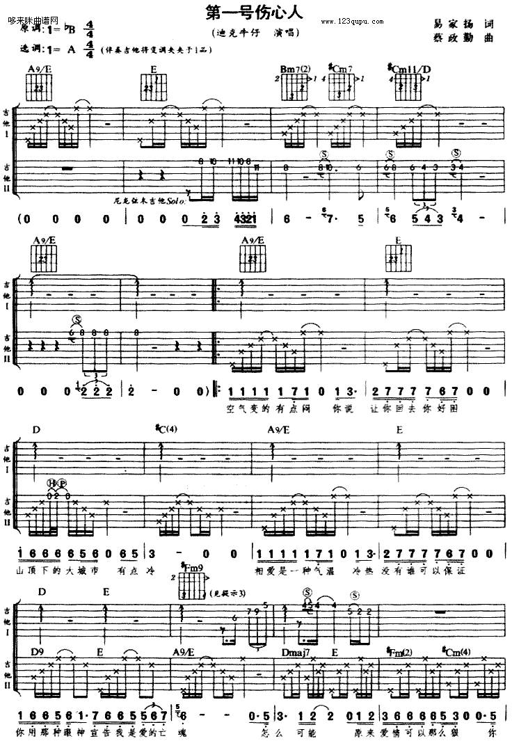 第一号伤心人-迪克牛仔吉他谱